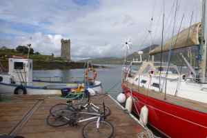 Now, Achill Island is no small island, in-fact it is large enough that there is a bridge across the sound further up to connect it to the mainland, furthermore we took the bikes out the following day and only managed to cycle around about a quarter of it. The reason I am going into detail about how big an island it is and how many residents is because whilst we were on Inishturk Island a few days prior Phil had been chatting to a lady Phil (Philiomena) whilst at the swimming hole where myself and Philomenas daughter were swimming, she told us she lived on Achill Island, nice enough we didn’t think much else of it. We did however visit the pub she recommended in Westport with the music as it was her pub, with her sister and her being the licences’s and running it. Anyway whilst sitting at the jetty waiting to move we saw someone walking down the jetty waving at us…our immediate thoughts were “oh no here we go, we have to move again” well glad to say we were wrong it was our mate Phil she lived in one of the two houses at the end of the jetty (the only houses in view). How’s that for a small world. Anyway we went up to the house for a very nice warm cup of tea whilst waiting for the time to move. She must have thought we were stalking her after Inishturk Island, Westport Pub and then stopping 100 m from her front door.