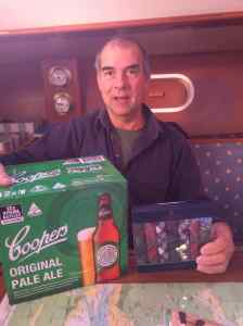 The downside of the christmas lights was when the crew (yes me) went outside late one night to get a picture of the finished spectacular that was red roo with all her lights shining bright only to drop the camera overboard in the water – DOH!!! That’s 7.5 meters of really, really cold water. It took a while to convince the captain that I had actually dropped the camera and that I wasn’t joking. Therefore pictures below of the boat and lights are pretty poor (ipad, never takes good shots at night). We knew the camera would be stuffed but had hopes of recovering the memory card with lots of London pictures on it, and therefore in the water I went a few days later (it took time to get the courage to go in). I couldn’t get to the bottom and stay down long enough (without weights) to find it, disappointing. Trimilla to the rescue . . . (this is to become a theme), David had a waterproof video camera on a long cord with a live feed to a small screen that he used to check out the bottom of his boat on occasion and this worked a treat, we were able to locate the camera and then used a highly technical tool (a big fishing lure with lots of barbs) to hook the camera cord and what do you know – it worked. Furthermore the memory card was fine and we were able to get the pictures. Not so much success with the cordless drill that Phil dropped overboard a few weeks later – but anyway it made the score 1 all.
