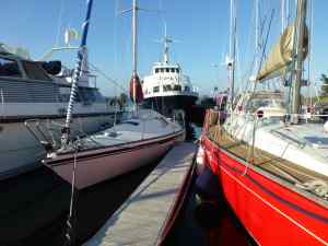 Also as a side note, when we were leaving the next morning the gentleman on the motor boat beside us, was on deck watching us leave (code for standing on his deck to protect himself incase the wind blew us into him) and after we got clear, pulling off the perfect extraction from the dock he commented “you two are professionals – well done!” If only!
