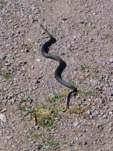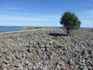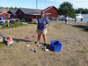 The landscape was very different to any of the other islands we had visited, very flat and low lying, hardly any trees just shrubby vegetation and thousands of rocks, but not the huge boulders we have been used to, these were pebbles, you know the kind that are really hard to walk on. We did a lap of the island on foot, and being a very warm day Maree duly carried her towel along in the hope of finding a good swimming spot – not to be however too pebbly and uncomfortable. We did get ourselves a picture of the other kind of Finish snake however, the black one (don’t worry he isn’t poisonous, unlike the adder which we saw on one of the first islands).