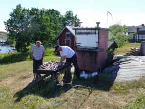The other local fisherman (responsible for a family of 5 and therefore half the islands population) works as a pilot for the commercial boats passing through the region, one week on one week off. They all enjoy the 6-8 week sailing season as it brings many visitors to their island. They smoke fish daily and sell them to visitors as well as having a very small kiosk (beer, coffee, daily pastries, ice-creams and crisps). Of course the sauna on the island is popular also (most of the islands visited since the first one have a charge for the sauna, usually around 15 Euro for an hour – needless to say we haven’t bothered).