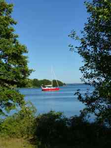 The following day brought gentle winds, but enough to sail – very exciting! Shame we were only moving 11 n.miles, but an enjoyable 11 n.miles it was with the main sail and genoa taking us along at a very leisurely enjoyable pace. In our magic Baltic book Aspö was detailed to have spaces for 20 boats on stern anchor to the dock, and on approach it already looked very full (couldn’t see the dock at all) yet there was a beautiful bay 300 meters off, sheltered and picture perfect just waiting for us to drop the anchor in 6 meters of water – lovely (we are most comfortable on anchor anyway and it is SO MUCH easier).