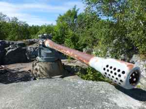 The second battery on the island is the 6 inch gun battery built on the southern tip of the island. It was home to four 6 inch guns and was used for training until the Second World War when it contributed to battles during both the Winter War and the Continuation War. The battery was dispersed towards the end of the 1960s and the four guns were modernised and relocated to various points on the southern part of the island. Advancements in artillery technology and time have made these guns obsolete but they still remain in position albeit deactivated. The latest addition to the islands artillery are the 130 mm turret guns which are still in use.