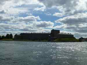 It was demolished in 1833 when declared out of date and the present fort was built over a period of 30 years by convict labour, it was hardly completed before it was again outdated. By then the grooved bullet had been invented and was considered a major threat to the fort, and this was tested by the ship Hildur anchored at Vaxholm who were ordered to fire a single shot from their brand new 24 cm cannon with grooves inside the barrel, the result – the outer and inner walls collapsed! Whoops!!