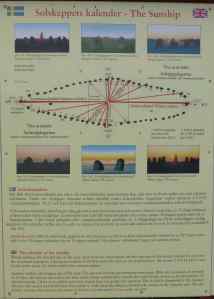 It is thought that Ales Stenar was created during the time of vikings around 800-1050 AD. The sun sets at the north-western end of the ship on the day of the summer solstice (longest day of the year) and rises at the opposite end on the day of the winter solstice (shortest day of the year) so in my humble un-educated opinion it might just be a calendar come clock rather than a ship – just putting it out there!