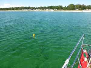 32 nautical miles south/west took us 9 hours which of course equals a rather slow sail managing just 3.5 knots but a sail none the less – a LOT more pleasant than motoring, and it was a nice day, a bit of chill in the wind early but bright and sunny. The highlight of the journey was spotting 2 dolphins off our stern. We have not seen any dolphins in the entire Baltic Sea until that moment (you may have notices from earlier posts our concern about lack of critters and sea life). They didn’t play in the bow as previous porpoises have done but broke the surface a couple of times showing their beautiful shape so elegantly in the water.