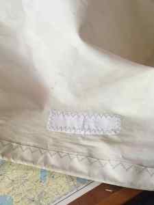 Overall the usually tough sails are getting pretty fragile and pretty darn thin in places, showing a lot of UV damage obviously not from the couple of years we have been sailing . . . no not at all – no fear of UV damage during that time!, but it is from the couple of years Red Roo spent in the Caribbean before we brought her. The sun is hard on the sails and lines and we knew that when we brought her that we would need new sails in the fairly near future, we have managed two years (maybe because we have avoided the sun!) anyway fingers crossed we get another one out of them as you can imagine it is not a cheap thing new sails.