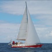 Sneaking a bit of extra speed using the head sail in the canal 🙂