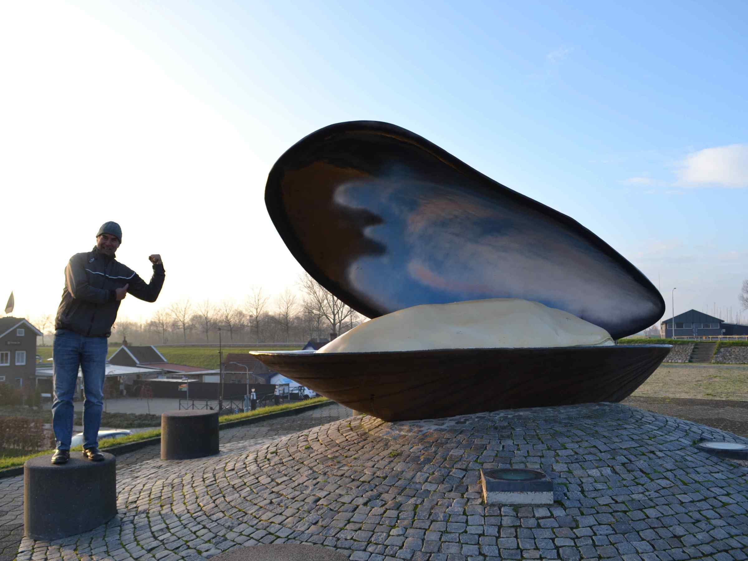 Bruinisse is the home of the Big Muscle pictured below on the right (obviously), and strangely enough also the “big shovel” not sure of the story associated with the big shovel. Our appetites were rather excited about the opportunity to get a good feed of muscles whilst in town yet it was harder than we imagined to actually find some to buy, but get some we did! A local muscle farmer was telling us how hard a business it is to make a life out of as it costs him €1 a kilogram to farm them yet the big name supermarkets in his country only buy them for .80 cents a kilo. They make their money early in the season when the overseas markets are muscle hungry and pay top dollar, then just have to suck it up for the remainder of the year locally with what ever price they can get.