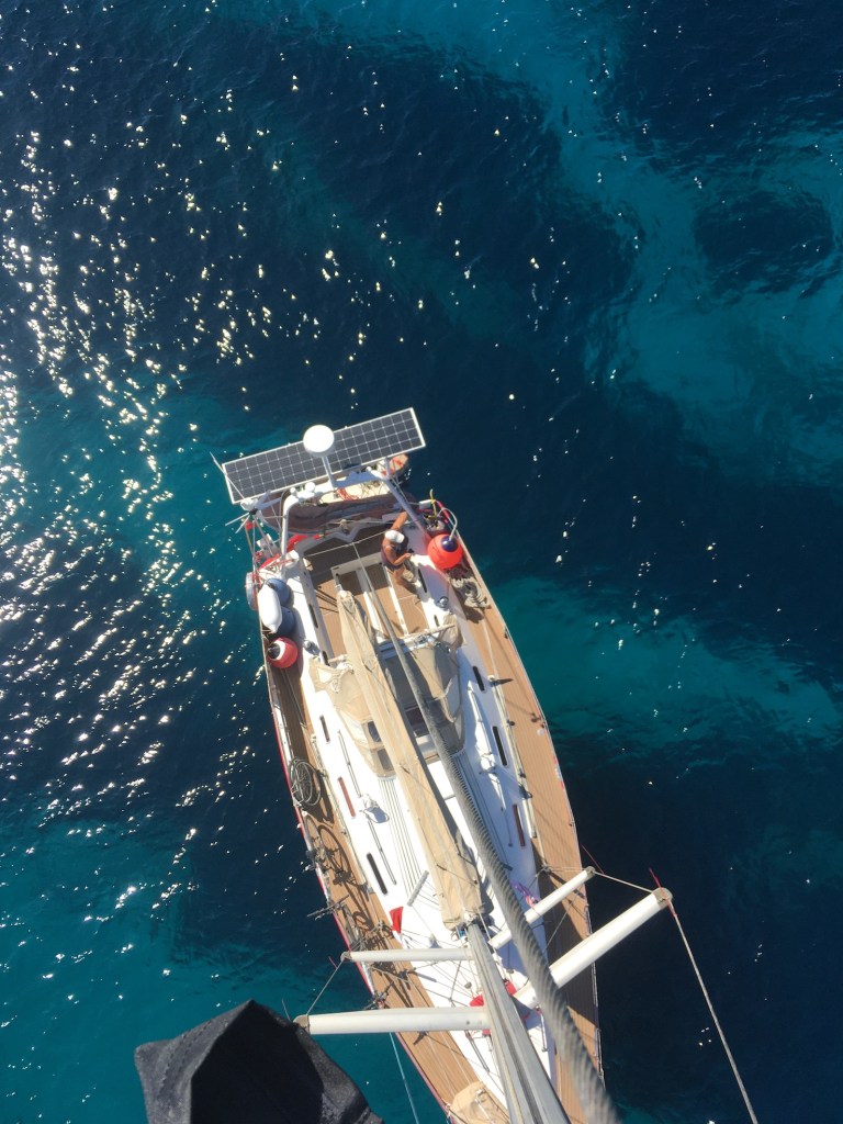 Whilst on anchor over the last two weeks we had been continually working on our problems with the wind instrument and excess power issue. It is true what they say about yachts, it’s just fixing boat problems in remote beautiful locations. Phil made 3 trips up the mast at anchor in the last few days, and we had been in contact with specialist technicians from Valetta (Maltas Capital) and it is finally time to bite the bullet and get our money out to go into the marina and get them all dealt with.