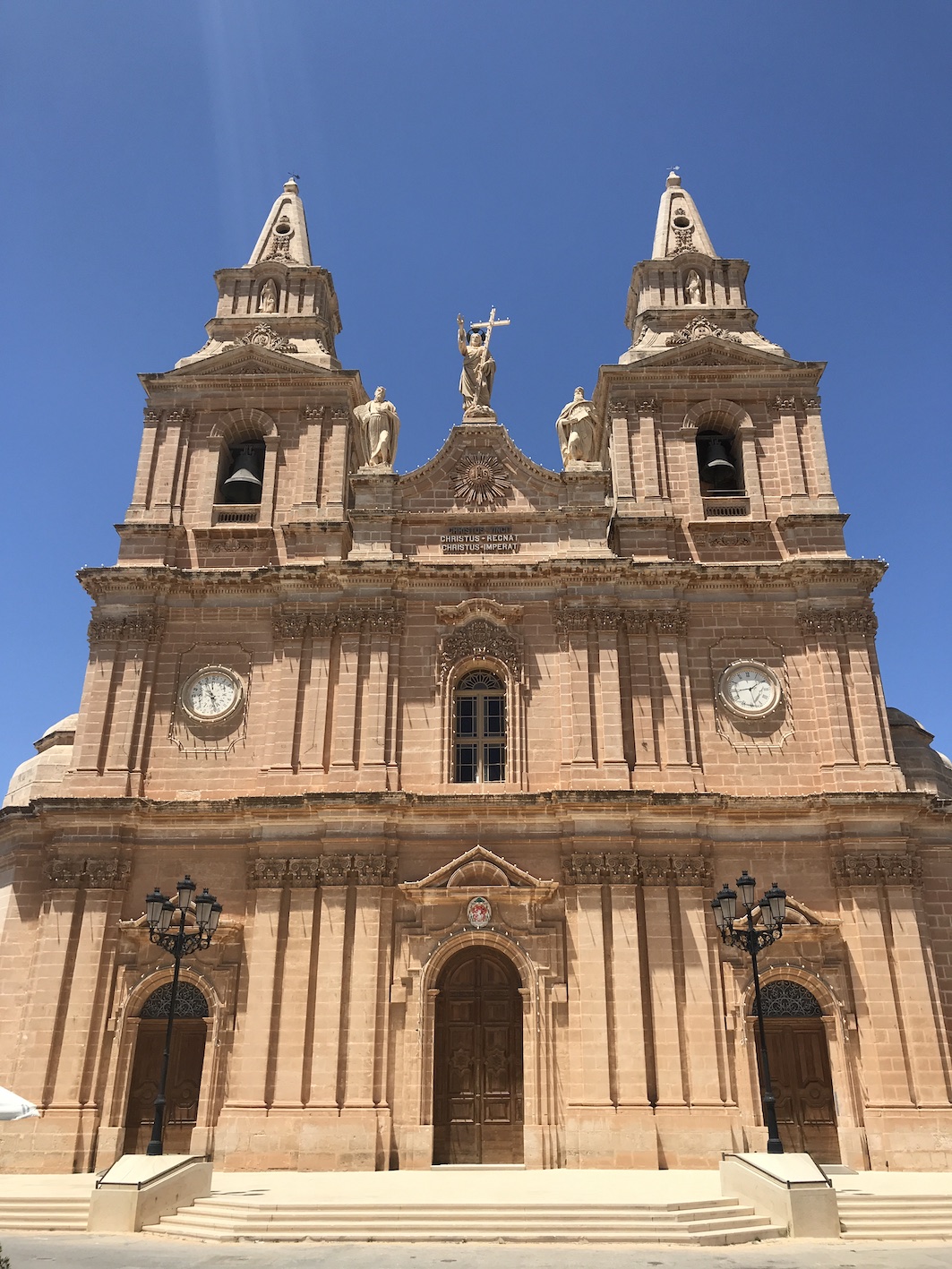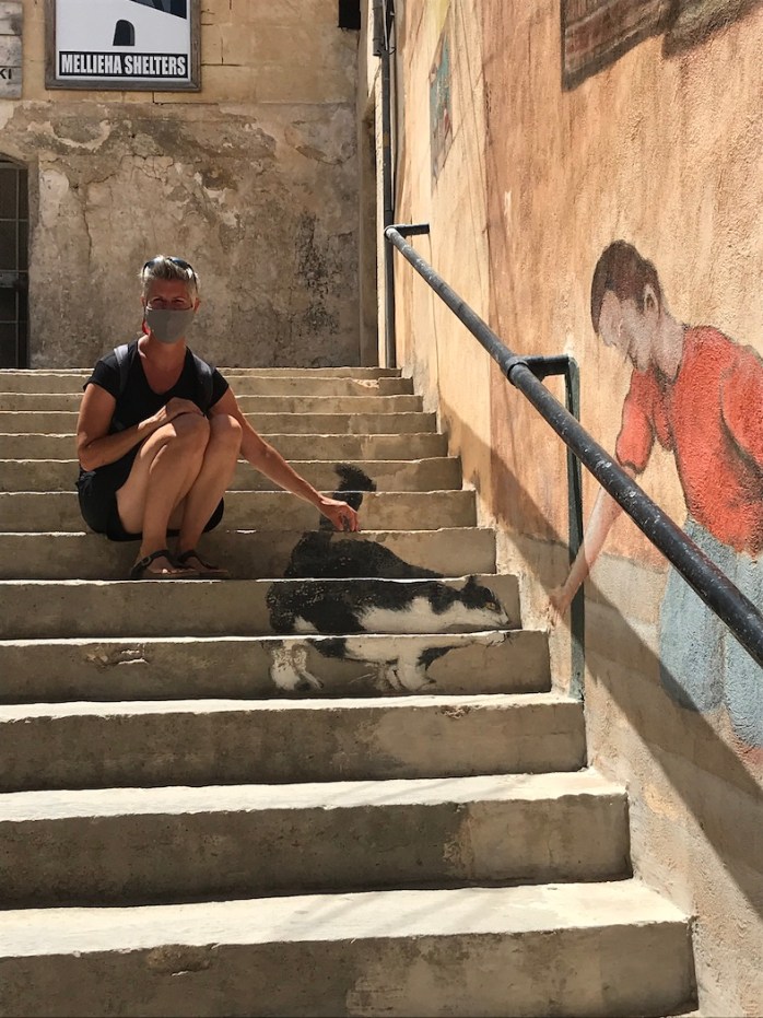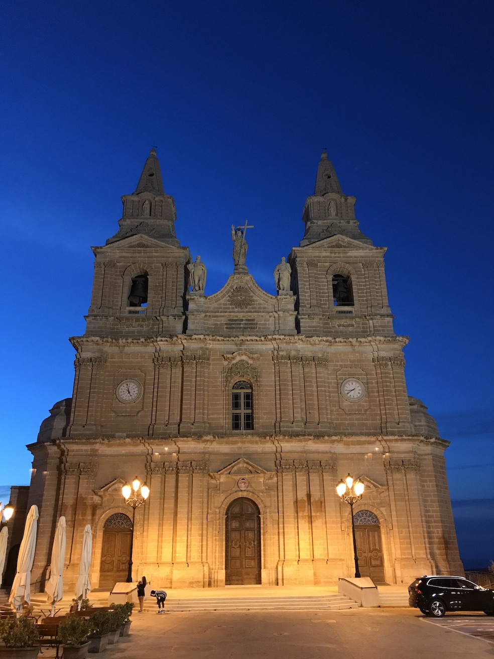 On the walk to the supermarket we passed the magnificent Church of Our Lady of Victory. During our short time in Malta we have to come understand that religion forms a great part of the islands history with many many grand churches and many Saints and shrines and religious inspired names, even religious statues on the beaches. The church here which is believed to have been blessed by St Paul himself was adorned with thousands of light bulbs which inspired us to take a walk back a few nights later to see it lit up, but after waiting for nightfall we were told by a local walking past that they only turn the lights on during fiesta.