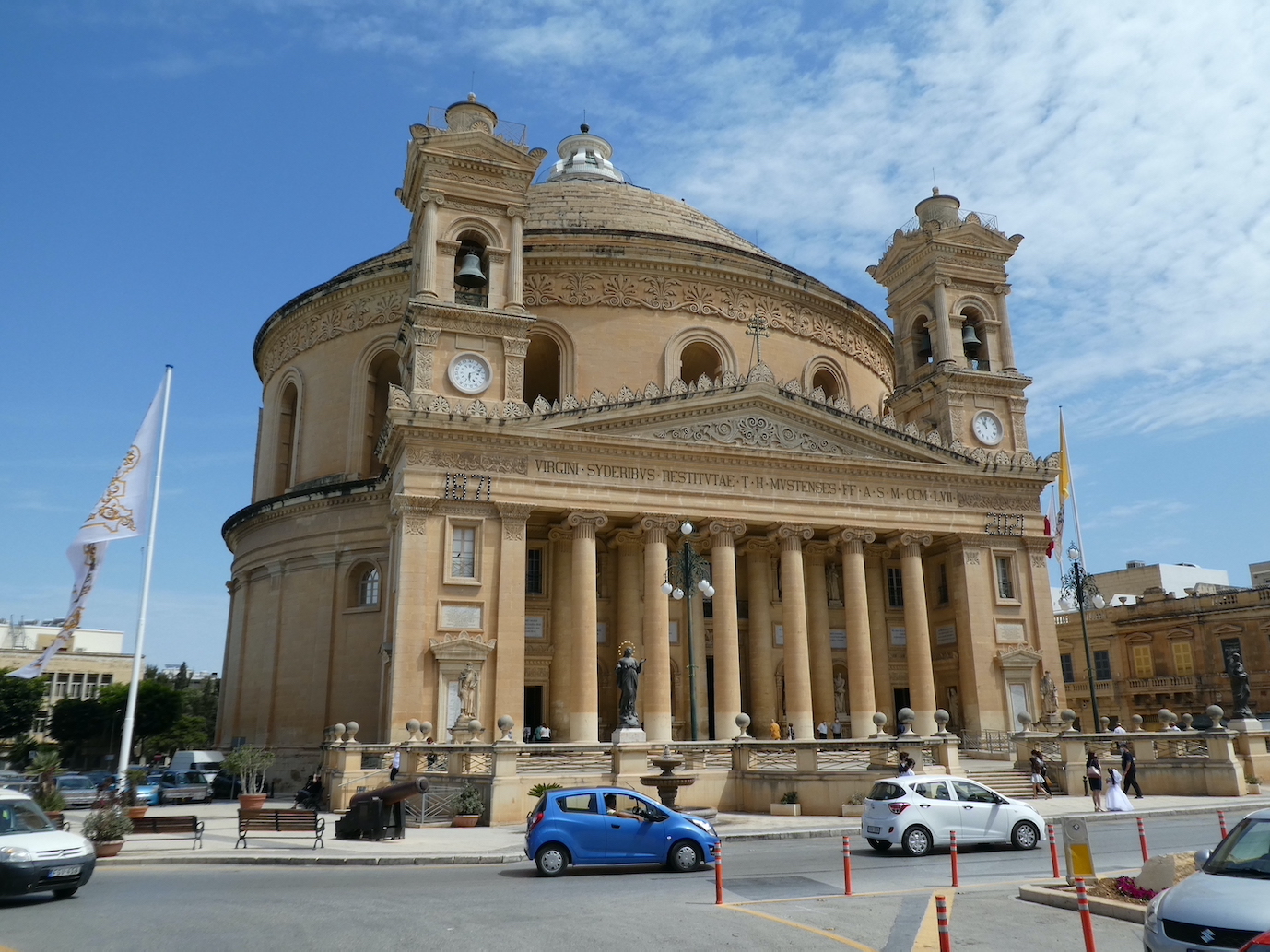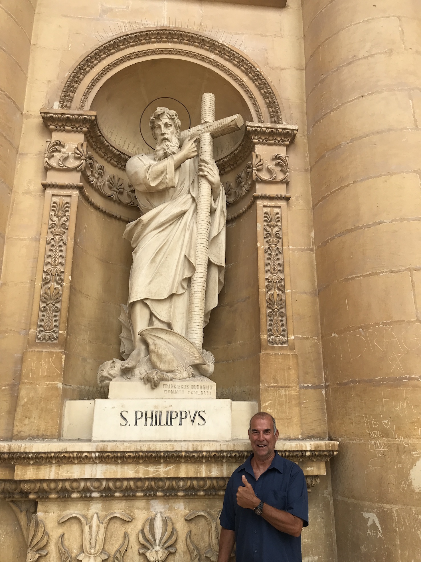 We scored a bonus on a day outing to Rabat, we had to change buses mid journey at Mosta which was a great surprise as the bus stop is right outside the Mosta Dome (The Parish Church of Santa Maria). This magnificent building was constructed between 1833 and 1860 using funds raised locally. The church is also famous as being the miracle of Mosta, as on the 9th June 1942 during World War II, while 300 parishioners were inside three enemy bombs struck Mosta Dome. Two bounced off and landed in the square without exploding. The third pierced the dome, smashed off a wall and rolled across the floor of the church. Miraculously, no one was hurt and the bomb failed to detonate. A replica of the bomb remains in the church sacristy next to the alter.