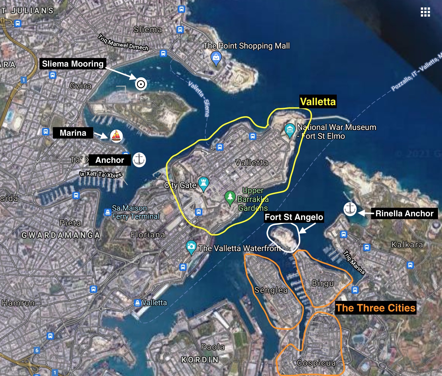 We left the marina and on advice from friends made in Tunisia ended up the following 5 nights on a vacant mooring inside Sliema Creek – thanks Blitz! – also a big thanks to whomever owned the mooring, we really appreciated it whilst we sorted our issues. It also allowed us to explore the nearby Valletta, the capital of Malta.