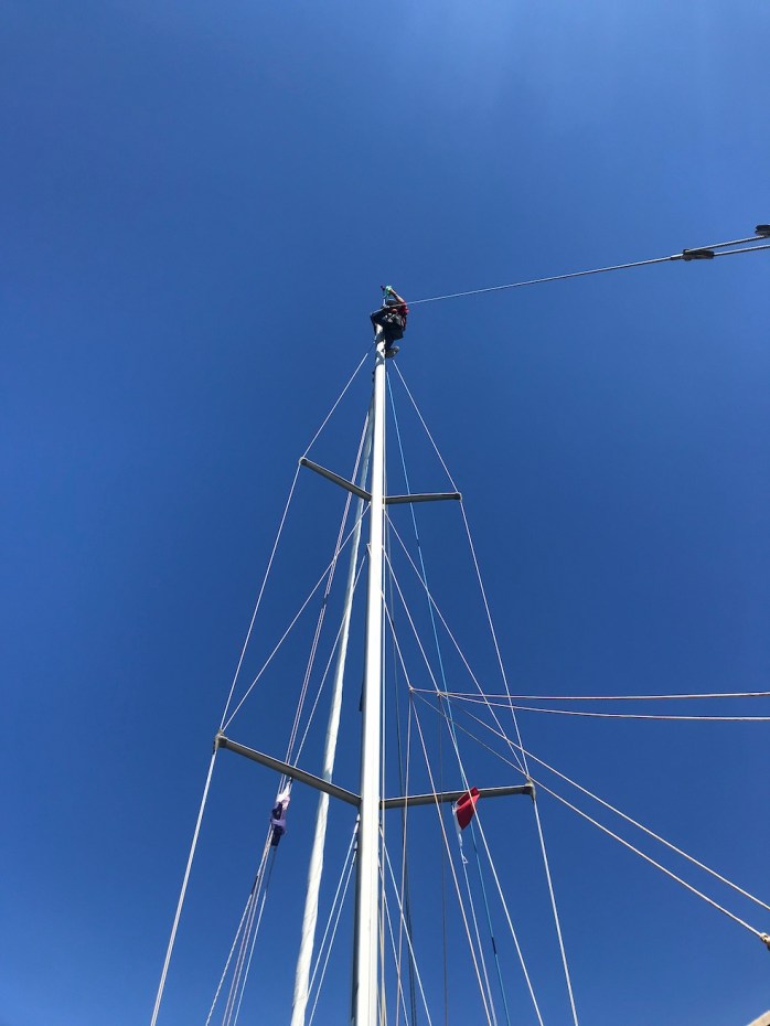 We didn’t have quite such a quick win with the wind instrument.  The Raymarine technician was super busy even though we had previous contact with him and he was expecting us.  He bench tested our wind wand (anemometer, the whirly gig at the top of the mast) on the second day and reported back that it tested fine.  He then gave us instructions on how to self test the wiring between the wand at the top of the mast and the wind instrument display panel at the cockpit.  They also tested ok and within parameters.  His conclusion was that the instrument display unit was faulty and needed replacing.  Of course they no longer make the model we have and he didn’t have the new model in stock but he told us where we could order it from – for a mere €500.  Being the budget conscious cruisers that we are (without income) we managed to find out via the grapevine that a boat in the marina had recently upgraded his instruments and might, just might have a working spare the same model as the one we have.  We followed this up as a priority and met Axel who was very generous in lending us both his old wind wand and display unit to see if they fixed our problems.  Thanks Axel – we hope you and the family get to head off sailing on your own adventure soon.  Whilst we didn’t need the wand, we replaced our display unit with his and initially upon install it seemed to have worked, however once calibrated it was displaying the same negative figures as our faulty unit – oh well it was worth a try.