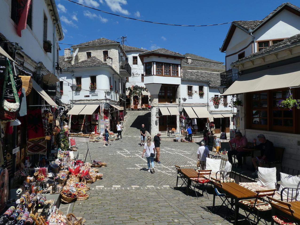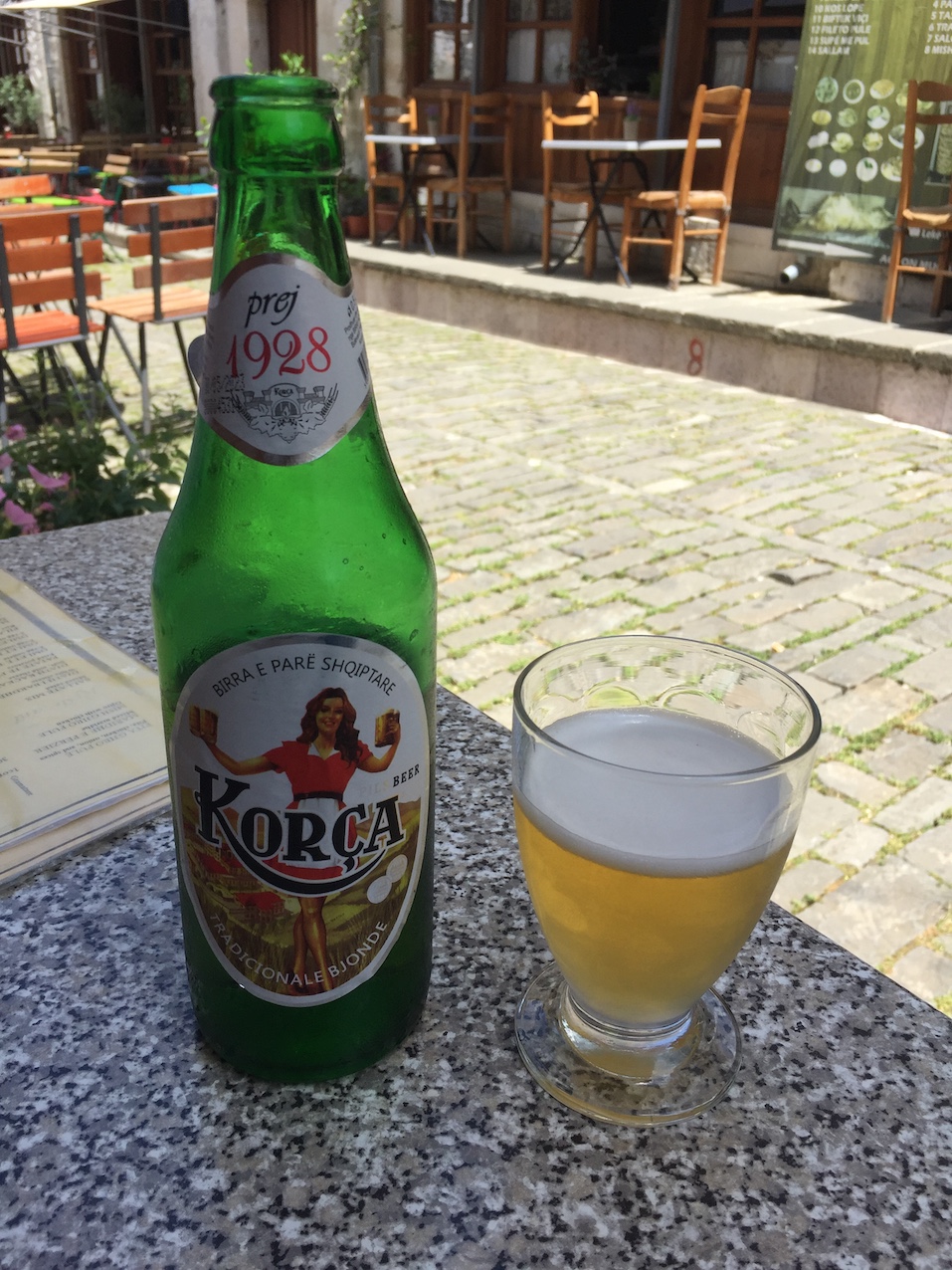 We enjoyed a traditional Albanian lunch in the old town here, we searched out the least touristy place, finding a lovely small “Grandma and Grandpa” run place in the back streets.  Through broken English and Albanian we told them we wanted traditional food, Chef Grandpa insisted we sit at the table he was at as “it was the best in the house” (we were the only customers), and Grandma selected our dishes; “Qifqi” (rice balls with herbs in a chicken broth) & “Tasqebap” (goluash) and of course Phil also drank his first Albanian beer.  The meals were traditional, small, delicious and cheap perfect for lunch. And of course we forgot to photograph (taking pictures of food doesn’t come naturally to us, but somehow we ended up with a picture of the beer?).